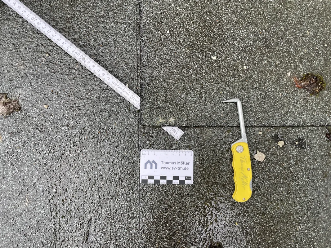 Fehlerhafte Dachabdichtungen: Hier sind die Bitumenbahnen nicht richtig verschweißt. – Bild: Thomas Möller, Dipl.-Ing. (FH)